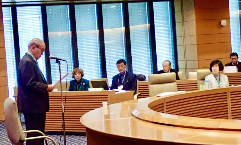 「私は1941年の太平洋戦争の年に生まれました。疎開先の水戸市が大空襲にあい、自宅が全焼し、母が子供達を守りながら川に逃げ、生き延びることができました。後に国際労働機関(ILO)会議で、日本軍から被害を受けたフィリピン政府の高官に会った際、自分の戦争中の体験を話すと、彼は、時間が救済してくれますね、と言われました。