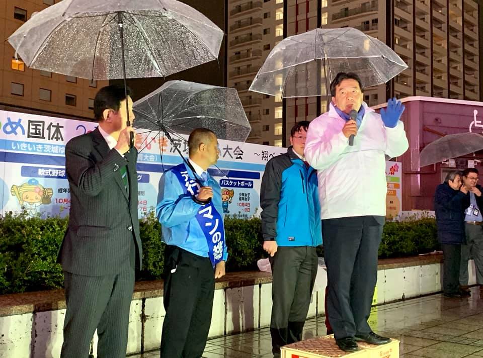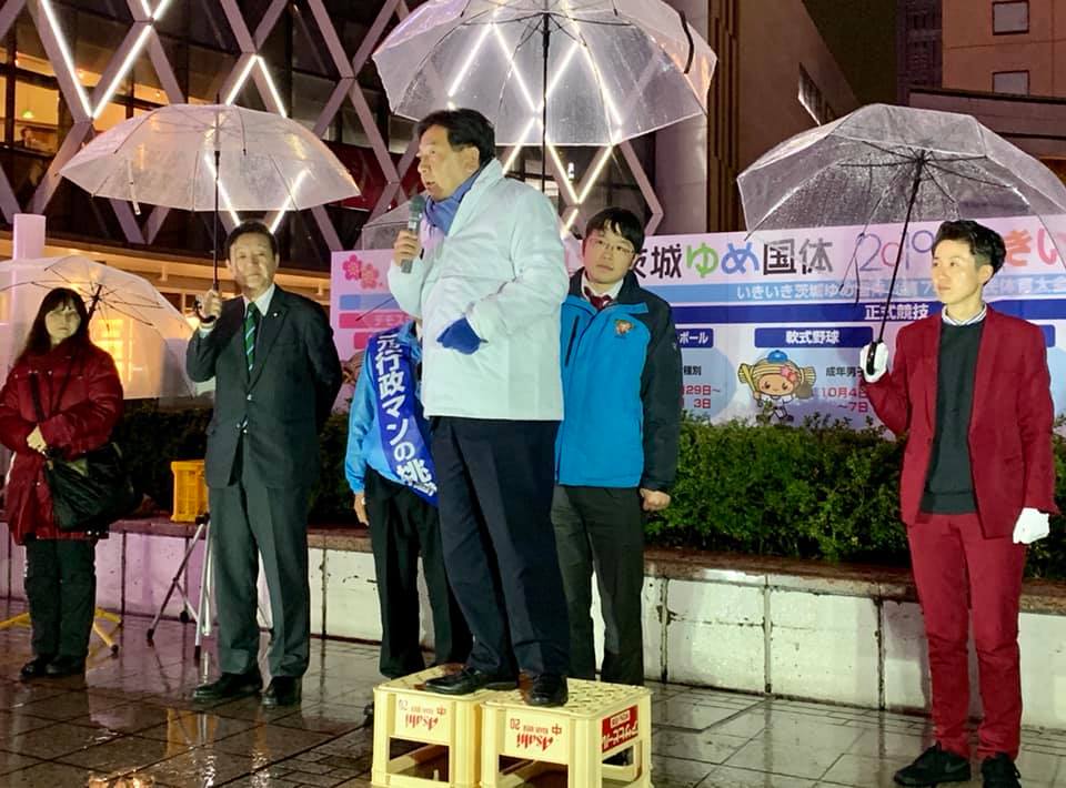 立憲民主主党枝野幸男代表が、水戸市議会議員選挙予定候補の萩谷慎一さんと滑川友理さんの応援に水戸駅に駆けつけてくれました。 7日に投票が終わった統一地方選挙の前半戦で躍進した立憲民主党の勢いを14日からの市議会議員選挙に活かしていきたいと思います。 寒い雨の中、足を止めて聴いて下さった皆さん、有難うございました!