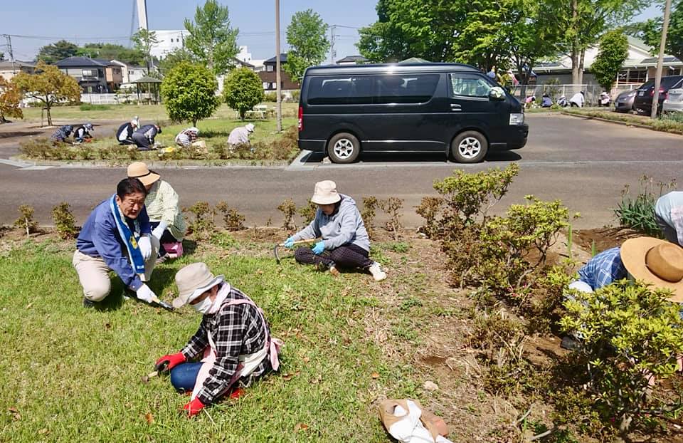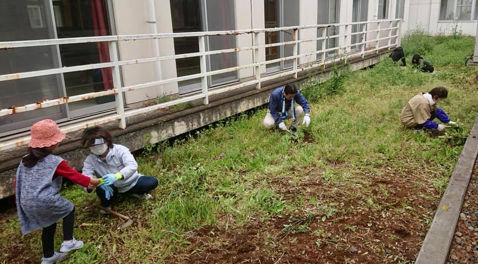 みどりの日は、ひのきしんデー草取りボランティア活動に参加しました。毎年の医療施設や老人ホームなどでの草取りは施設の皆さんに大変喜ばれています。脚を曲げて根の張った草と格闘すると心が清められます。