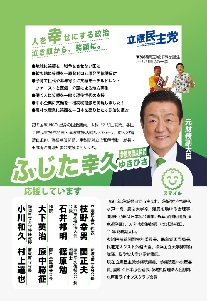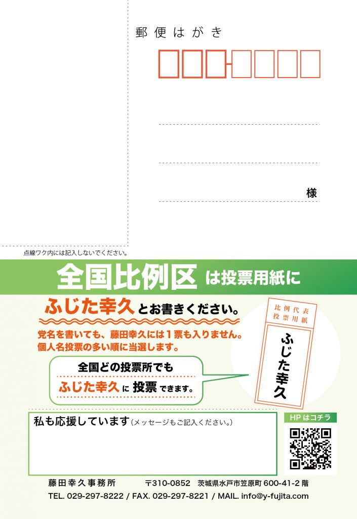 2枚目白紙の用紙には全国区の『藤田幸久』とお書きください!