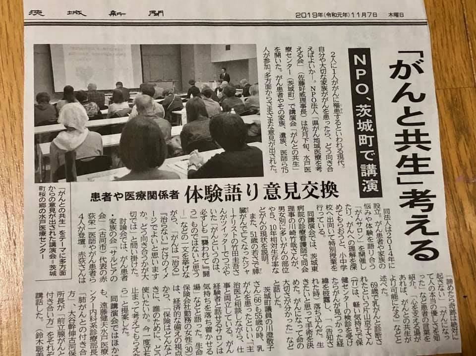 少し前になりますが、10月27日に「がんとの共生」講演会に出席しました。佐藤好威さんが理事長を務める「県がん地域医療を考える会」の主催で、私もほぼ毎回出席しています。私自身、父親が胃がん、母が肺がん、兄が大腸がんというがん家系で、叔父夫妻もいま、がんと共生しながら、この佐藤さんのNPOでボランティア活動をしています。また、がん対策推進対支援議員連盟にも参加していましたが、故・山本孝元参議院議員や、故・仙谷由人元官房長官など、がんと闘いながらがん対策を推進した仲間の議員の指導のお陰です。今後ともこの活動を支援して参ります。私の写真は、昨年9月のがんサロン養成講座の時のものです。