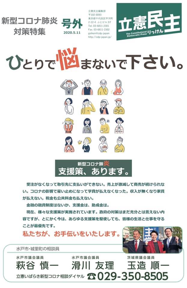 立憲民主党県連が「新型コロナ肺炎対策特集」を折込