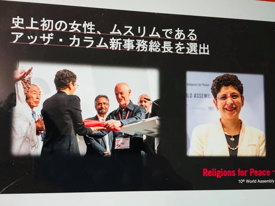 本年、初めて、女性で、ムスリムであるアッザ・カラム新事務総長が選出され、現在も様々な地域における宗教間の和解活動や人道援助活動を行っています。