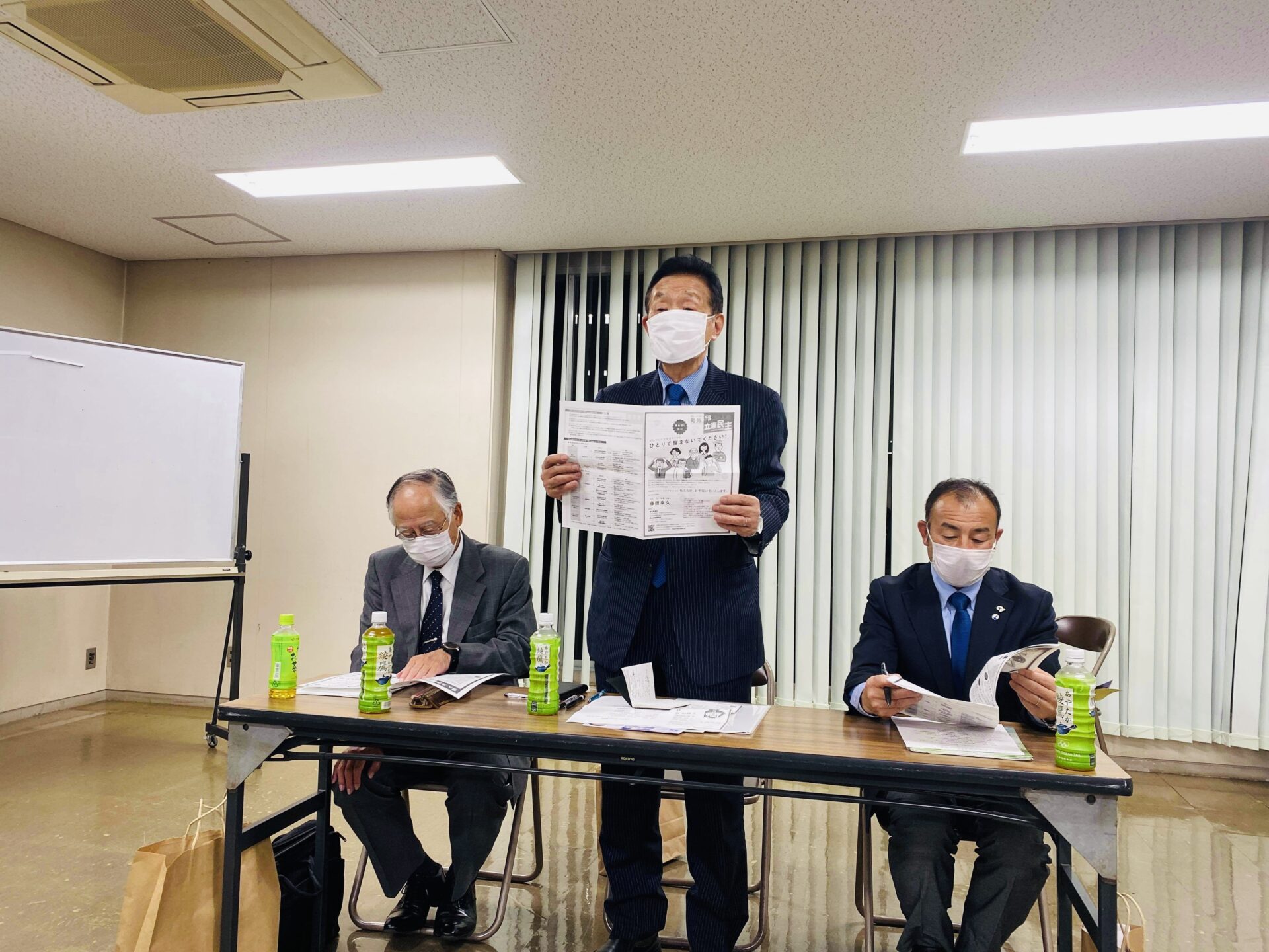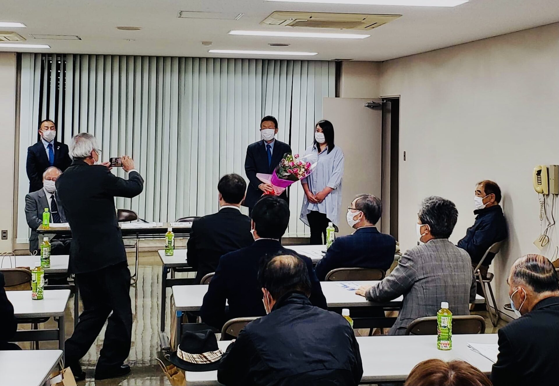 20日は小美玉市で報告会を開催しました。玉造順一茨城県議会議員や菅谷毅鹿嶋市議会議員も応援に駆けつけて下さり、地元の諸岡信裕小川南病院院長、金正出美野里病院理事長や藤井里美司法書士などからご挨拶を頂きました。前川文広前川林業社長の司会のもと、花束と頑張ろうコールで盛り上げて頂きました。