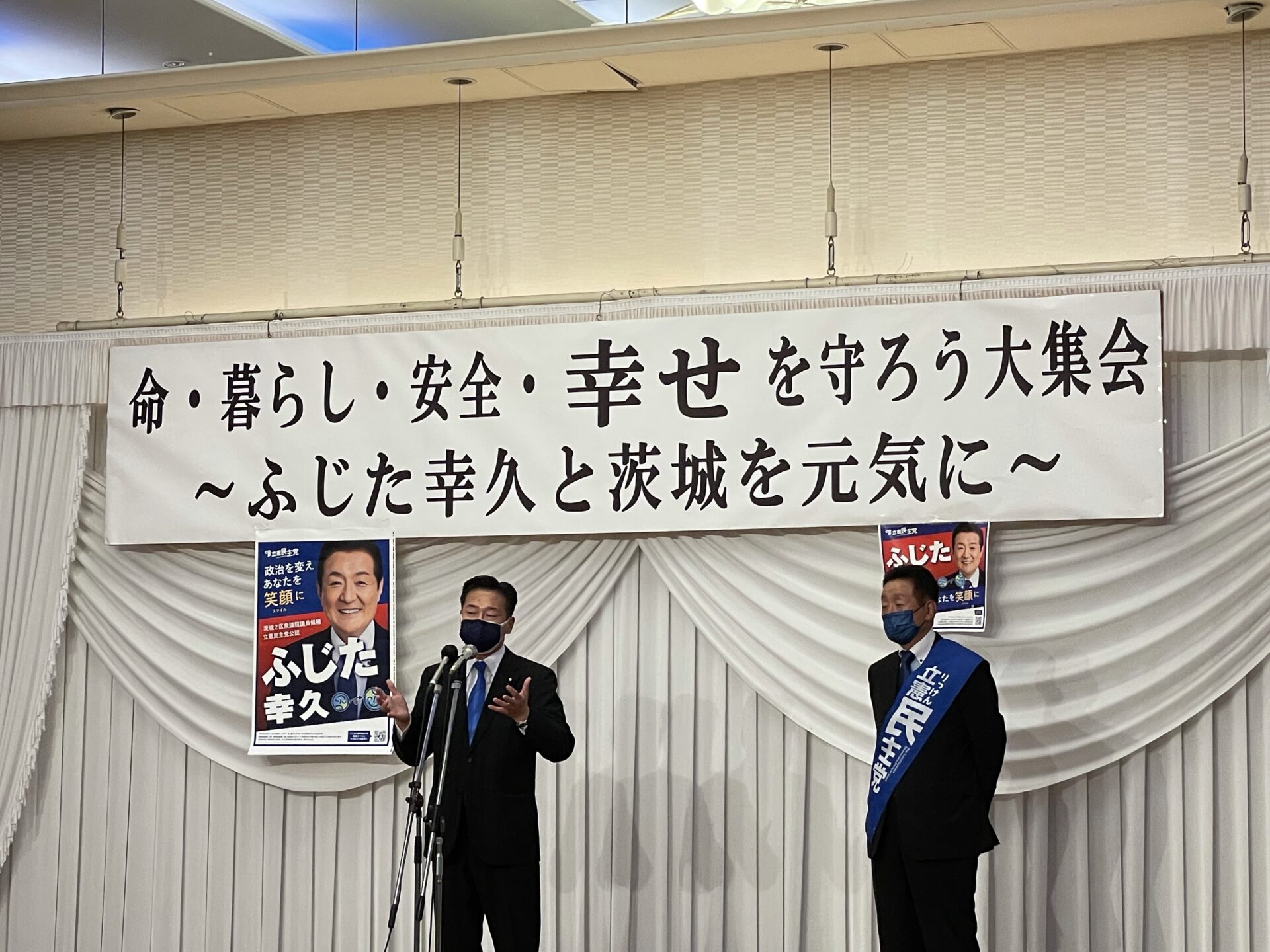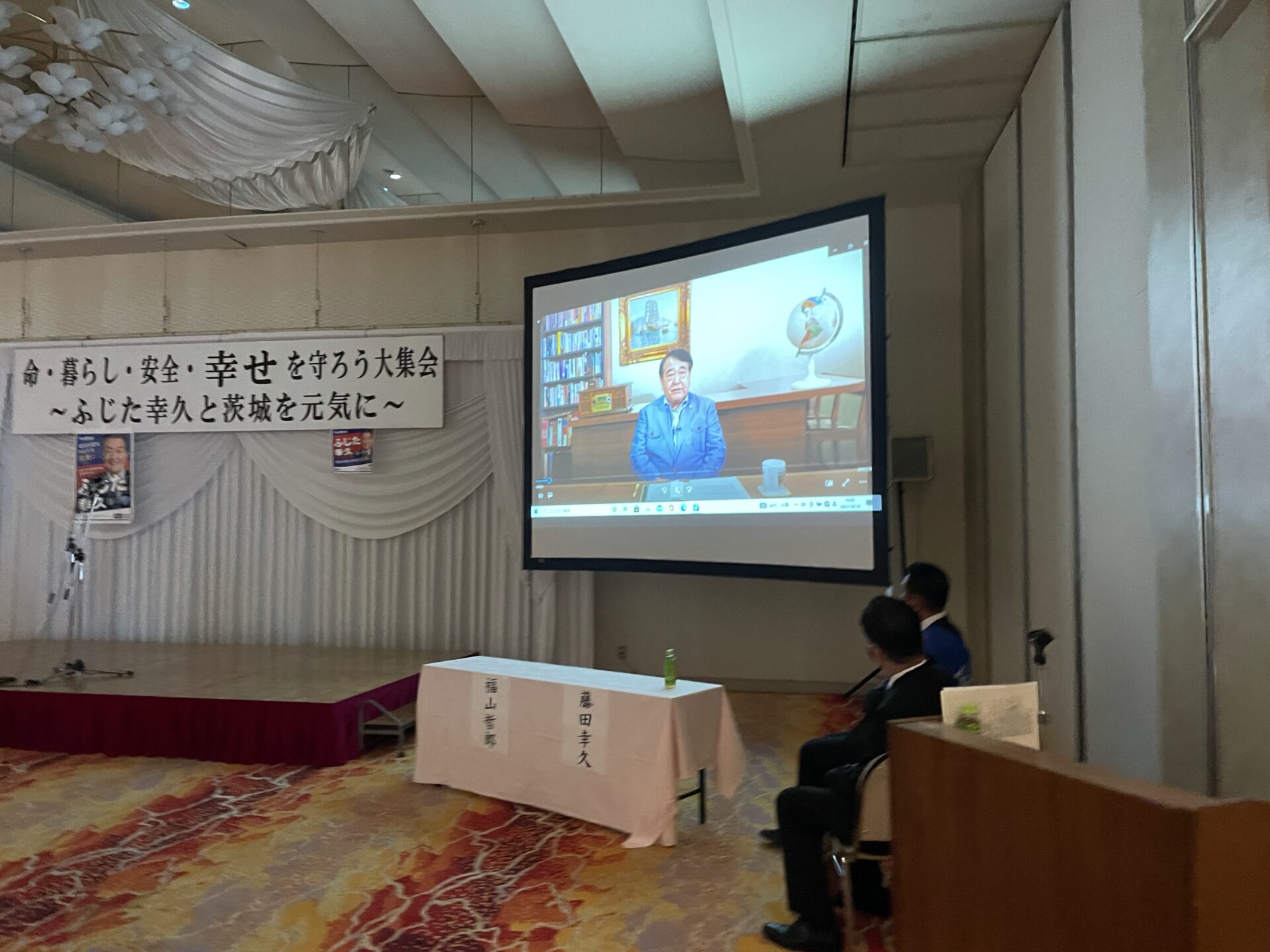 が潮来市の潮来ホテルで開催され、福山哲郎立憲民主党幹事長が応援に駆けつけて下さいました。また、TBS「サンデーモーニング」でおなじみの寺島実郎日本総合研究所会長がビデオメッセージを寄せて下さいました。松倉則夫松倉中央クリニック院長や松澤博茨城2区市民連合代表などから激励を頂き、主に鹿行地域の約200名の出席者から熱い応援を頂きました。