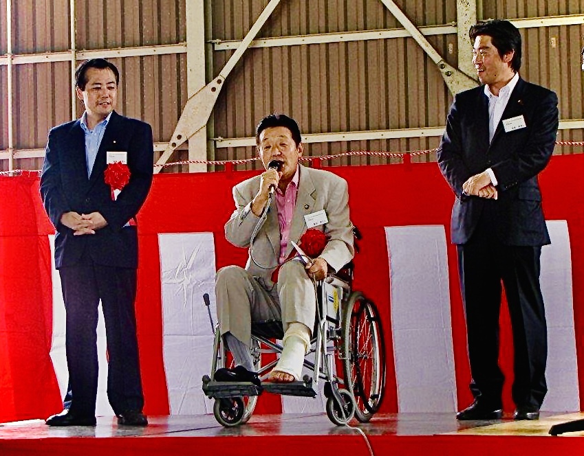 3枚の写真は、茨城空港での式典。橋本茨城県知事と島田小美玉市長を北澤防衛大臣にお連れして茨城空港に春秋航空を誘致した時。財政金融委員長としての国会の開会式。です。