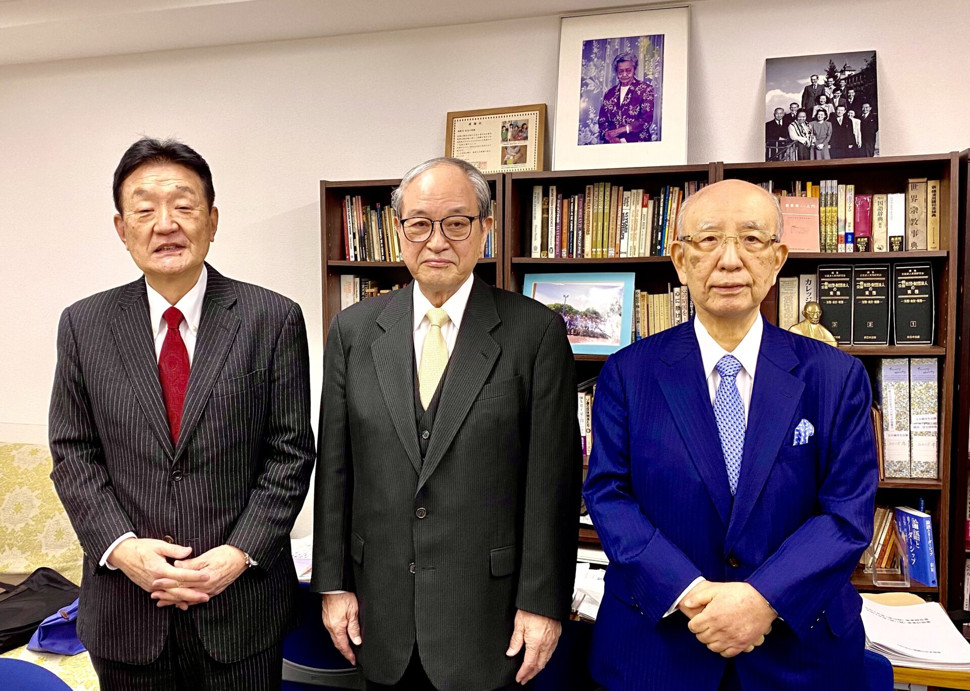 近年国際IC日本協会を率いて頂きました矢野弘典前会長(私の右)、橋本徹元会長(その右)に心から感謝いたします。