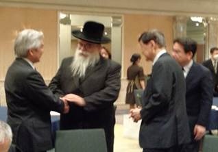 (写真4ウクライナとロシアの宗教者)(写真5中曽根弘文議員(左端)と篠原さん(右端))