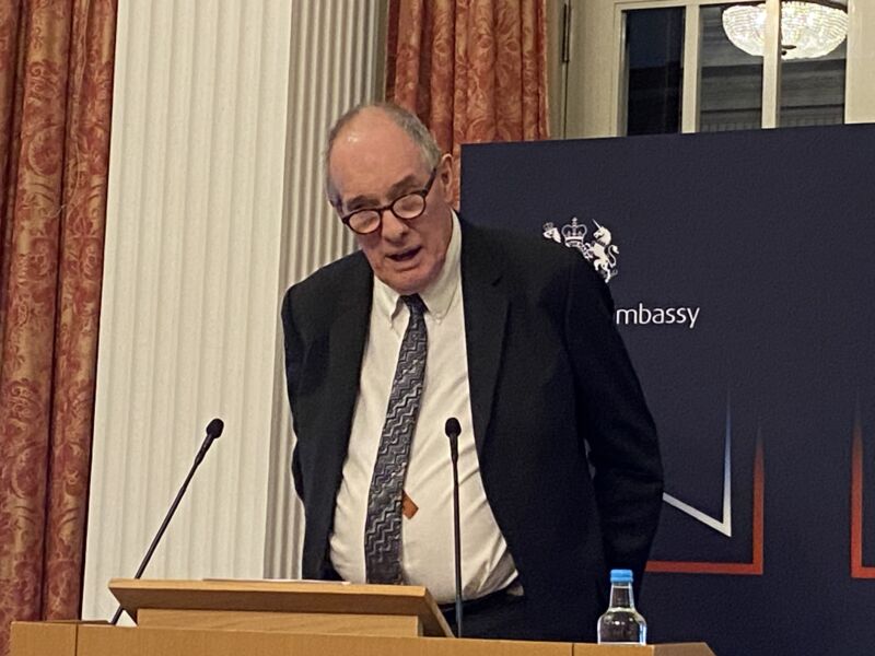 英国のジャーナリストのWill Huttonさんの講演を聴きました。Julia Longbottom駐日英国大使と田代桂子大和日英基金副理事長(写真2)が大使館で共催しました。テーマは「エンジン全開で飛翔 2030年に向けての英国の経済・政治展望」です。彼はBBC放送、The Guardian紙、The Observer紙編集長などを経て 英国社会科学院の会長やビジネスシンクタンクのPurposeful Companyの 共同議長として活躍した英国を代表する経済評論家です。Keir Starmer英国首相は、彼の最新著書「This Time No Mistakes: How to Remake Britain」を推薦しています。
