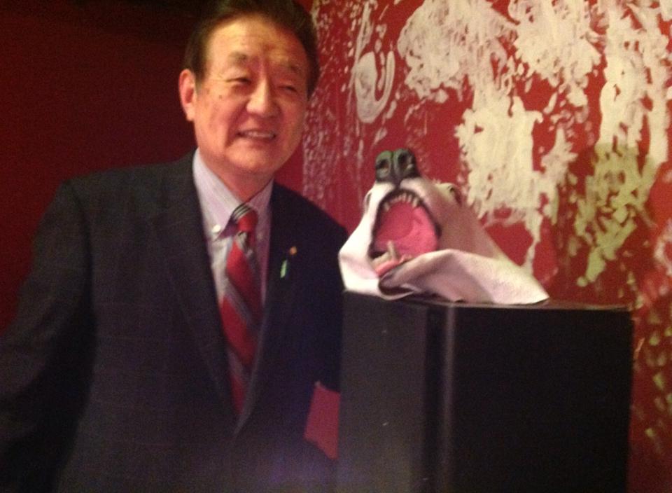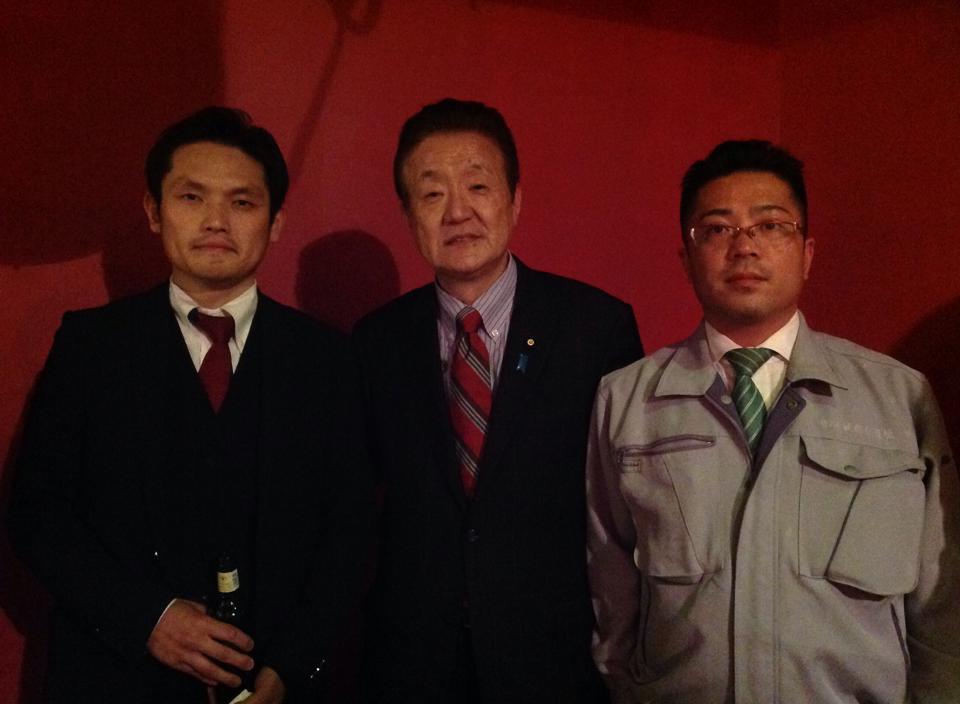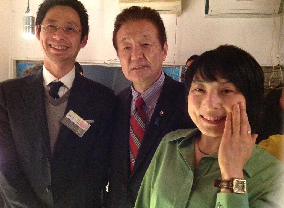 『日本一ゲンキの出る会』懇親会に参加 Published: 2014-04-25 取手で開かれた『日本一ゲンキの出る会』懇親会に出ました。東京芸大卒のアーティストが経営する店コンフリのマークはクマ!私を歓迎してくれました。二枚目は自然野菜の西辻ご夫妻、三枚目は、地元のゲンキ印、竹原大蔵さんと。