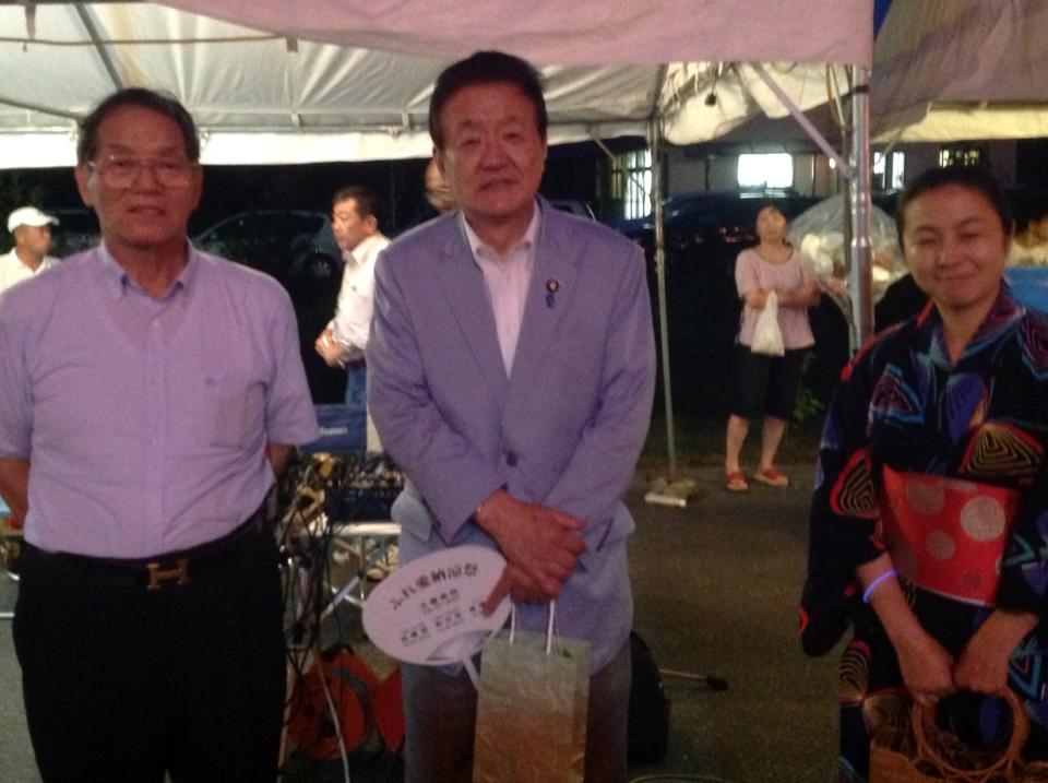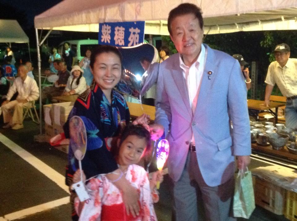 原中勝征前日本医師会会長の大圃病院の納涼祭に出かけました。設楽えみこ県会議員も一年生のお嬢さんと浴衣姿で参加していました。