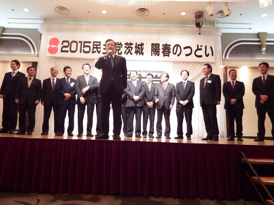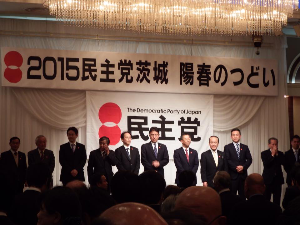 民主党茨城県県連大会と岡田代表を迎えてのパーティが開催 Published: 2015-02-21 民主党茨城県県連の大会と水戸駅での街頭演説会が開催されました。 民主党岡田代表を迎えての民主党県連パーティが開催されました。11人の市町村長、多くの各種団体の代表、統一地方選挙の立候補予定者からの挨拶が続きました。