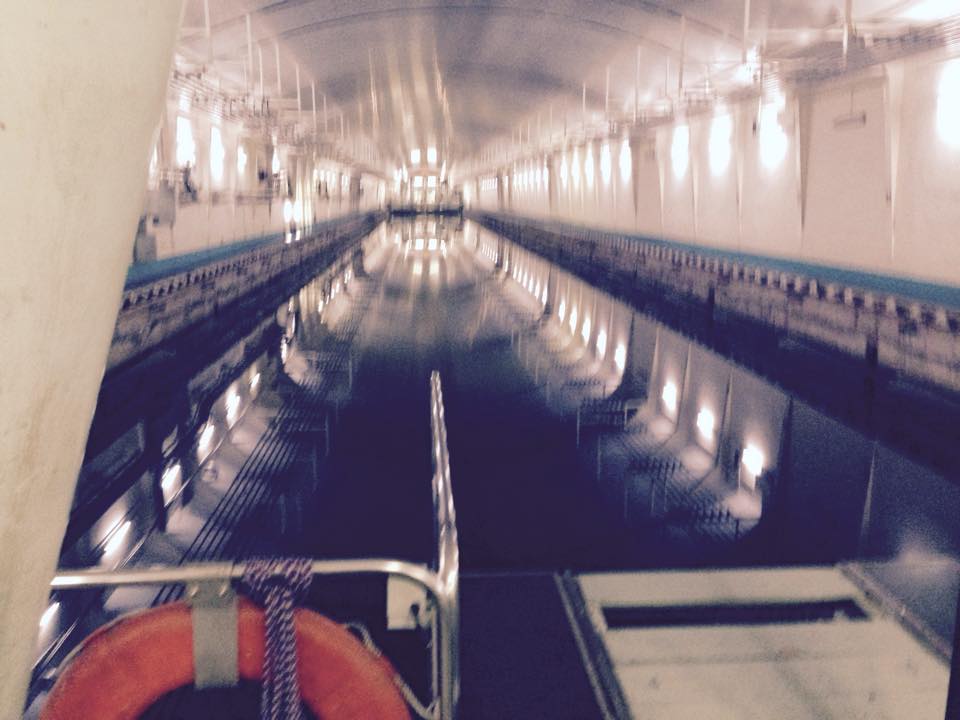 防衛省技術研究本部艦艇装備研究所を視察 Published: 2015-05-28 参議院外交防衛委員会で、防衛省技術研究本部艦艇装備研究所を視察しました。戦前から設立されたこの研究所に「技術報国」という碑があるのが、技術者としての誇りの現れです。大水槽では波や水流などの実験が行われています。 各国の防護服、人の動きを探知するロボットとその画像、探知ロボットなども視察しました。