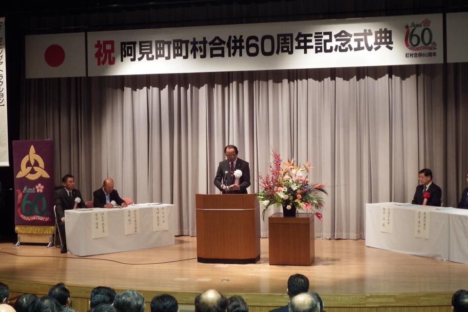 阿見町合併60周年記念式典に出席しました。お土産はさつまいものタルトです。