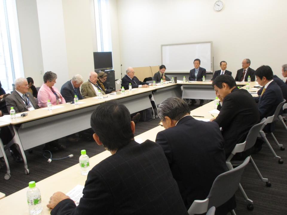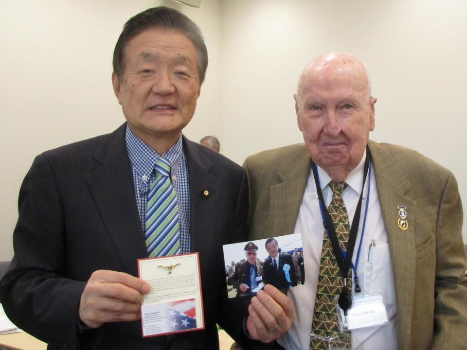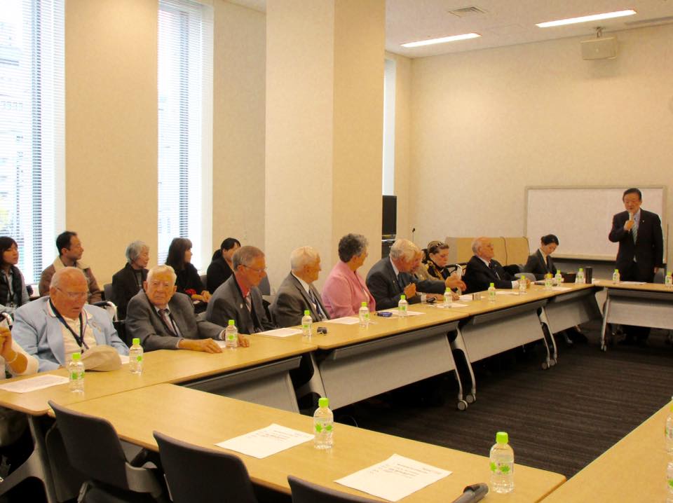 元米軍捕虜の方を迎えた講演会を、国際IC(MRA)推進議連(河村健夫会長)で開催しました。春から岸田外務大臣に要請し、戦後70年の今年、可能な方々を全て呼んでいただく形で実現した第二弾です。5名ともB29のパオロットでです。フィスクさんは三月の硫黄島で会った方で、その写真を持って再会を喜びあいました。