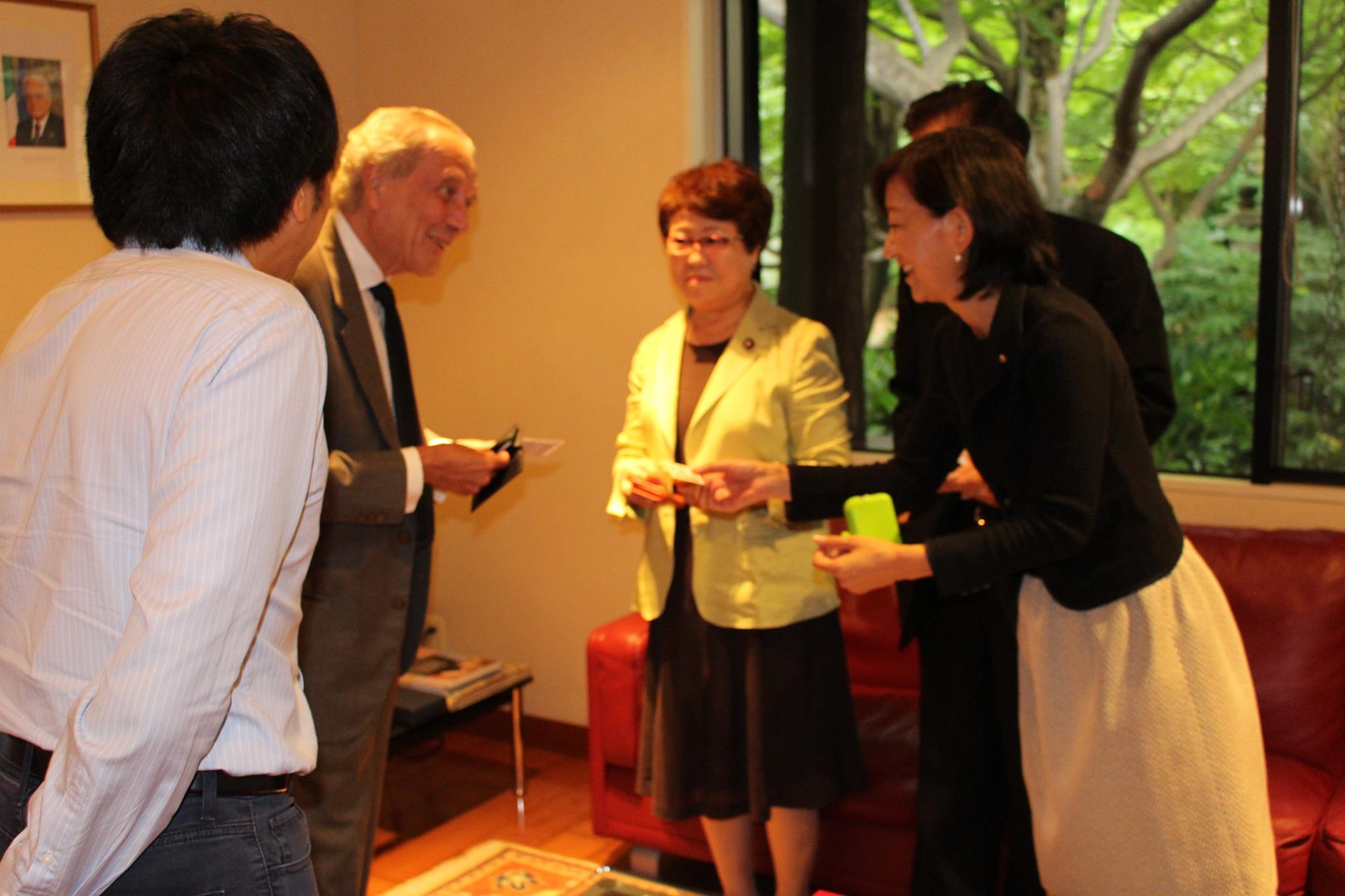 牧山ひろえ参院議員、神本美恵子参院議員ともにイタリア大使館を訪問しました Published: 2016-08-23 【牧山ひろえ参議院議員Facebook記事より】 8月3日のフランス大使館、8月5日のイギリス大使館との面談に引き続き、本日昼には藤田幸久国際局長、神本美恵子参議院議員ともに、イタリア大使館を訪問。ドメニコ・ジョルジ駐日イタリア大使と政策懇談を行いました。地道な意見交換やコミュニケーションの積み重ねが世界平和への礎だと信じて行動しています。