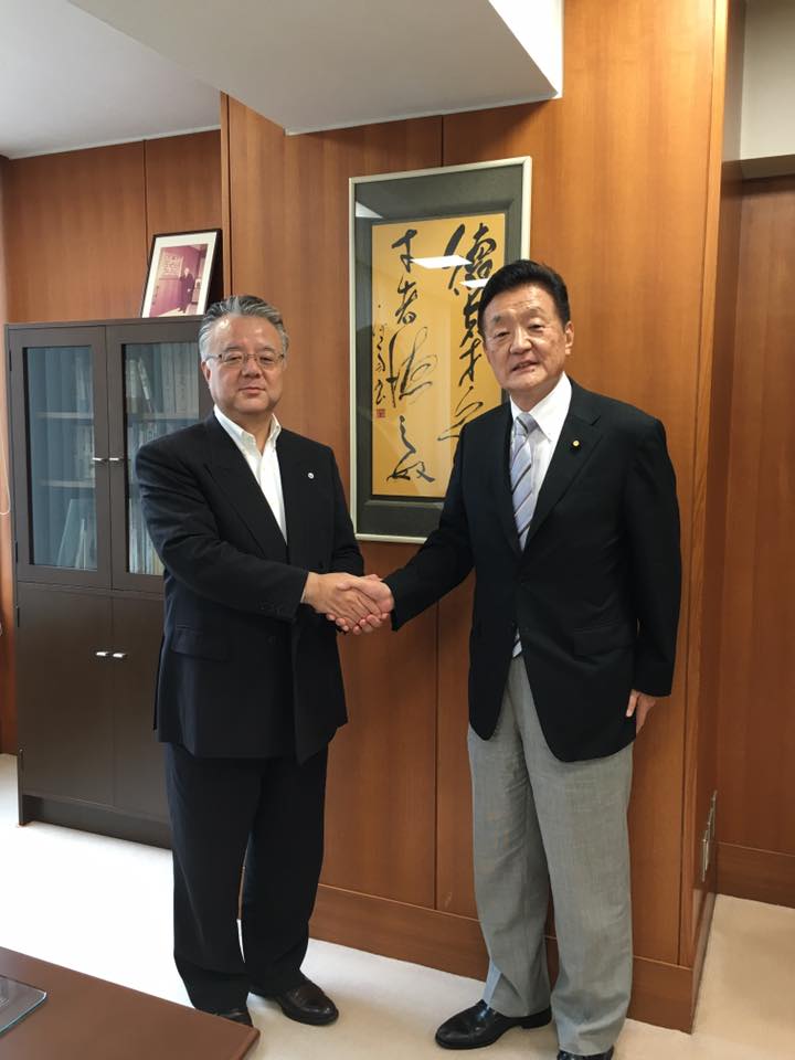 連合の神津里季生会長と電機連合の野中孝泰委員長と意見交換しました。