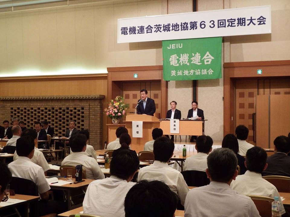 電機連合茨城地協の定期大会に出席しました Published: 2017-09-01 民進党代表選挙を後に、水戸に戻り、電機連合茨城地協の定期大会に出席しました。電機産業の国際展開が加速する中で、紛争や、社会分断が増大し、産業活動に支障をもたらさない世界の安定が重要であることを申し上げました。