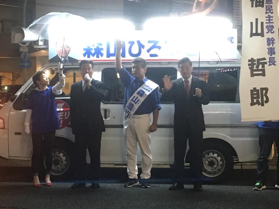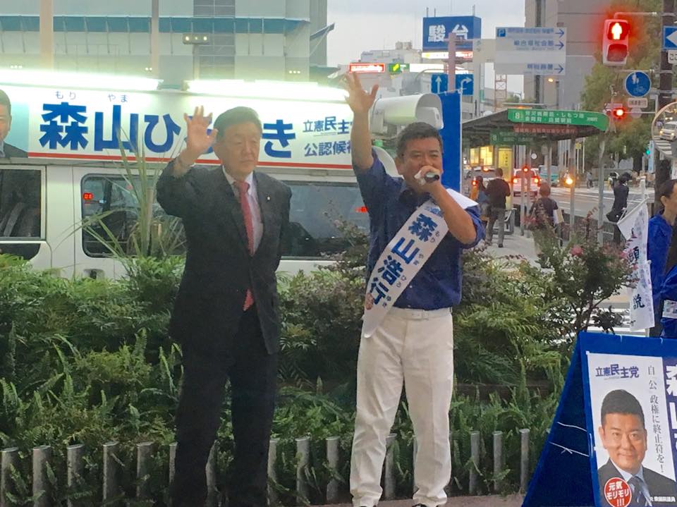 大阪16区立憲民主党の森山浩行候補の応援に駆けつけました。彼と百恵夫人が大学時代からの友人です。必勝!