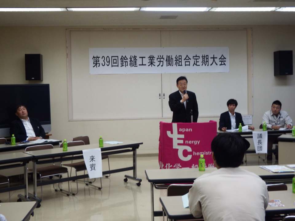 鈴縫工業労組大会でご挨拶しました Published: 2018-07-07 鈴縫工業労組大会でご挨拶しました。茨城県のゼネコンで唯一労働組合があり、私の父と創業者の鈴木縫之助さん以来のご縁のある優良企業です。