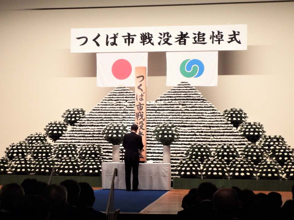 つくば市戦没者追悼式で追悼の辞を述べさせていただきました。筑波山を描いたお花が、英霊の皆様の追悼を深めて下さいます。