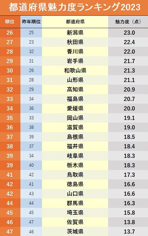 都道府県魅力度ランク、茨城県が再び最下位に