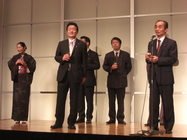 自民党を含む30人程の国会議員や地方議員の方々が出席して下さいましたが、代表して輿石東民主党代表代行・参議院議員会長より乾杯のご発声を頂きました。。