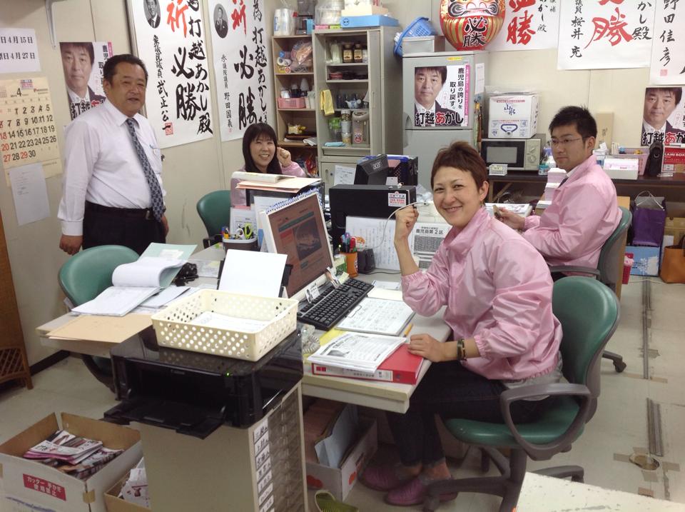 打越あかし候補の応援に Published: 2014-04-17 6時40分羽田発の便で鹿児島空港に到着。打越あかし候補の応援に。 打越事務所の皆さん、元気一杯です! 一生懸命がキャッチフレーズです!