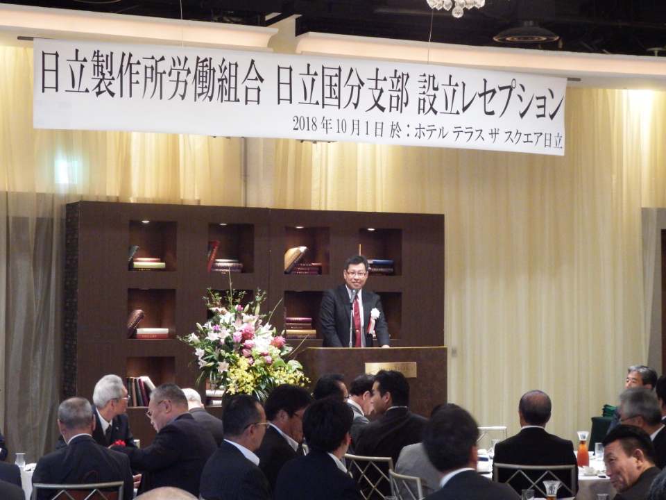 日立製作所労働組合日立国分支部の設立レセプションに出席しました 投稿日: 2018-10-02 。72年の歴史のある日立支部と66年の歴史のある国分支部との統合は新たな歴史の始まりです。 新しい時代の労使関係に基づく社会貢献を目指して頂きたいと思います。